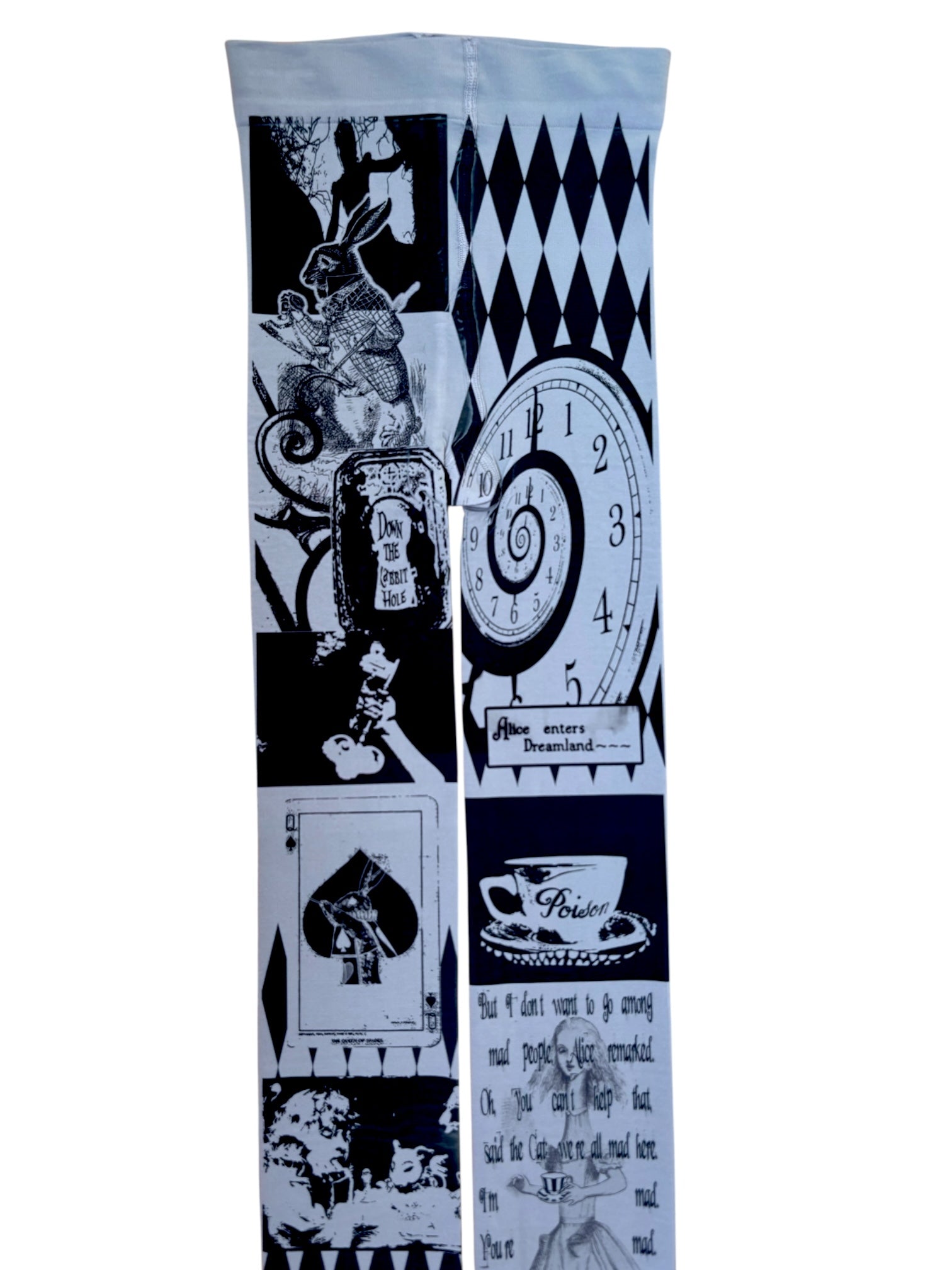 This item will be printed on basic 80 denier tights made of 84% Nylon, 14% Spandex, 2% Cotton. This item will be as close to the photo as possible but will have unique differences or minor flaws due to possible human error.