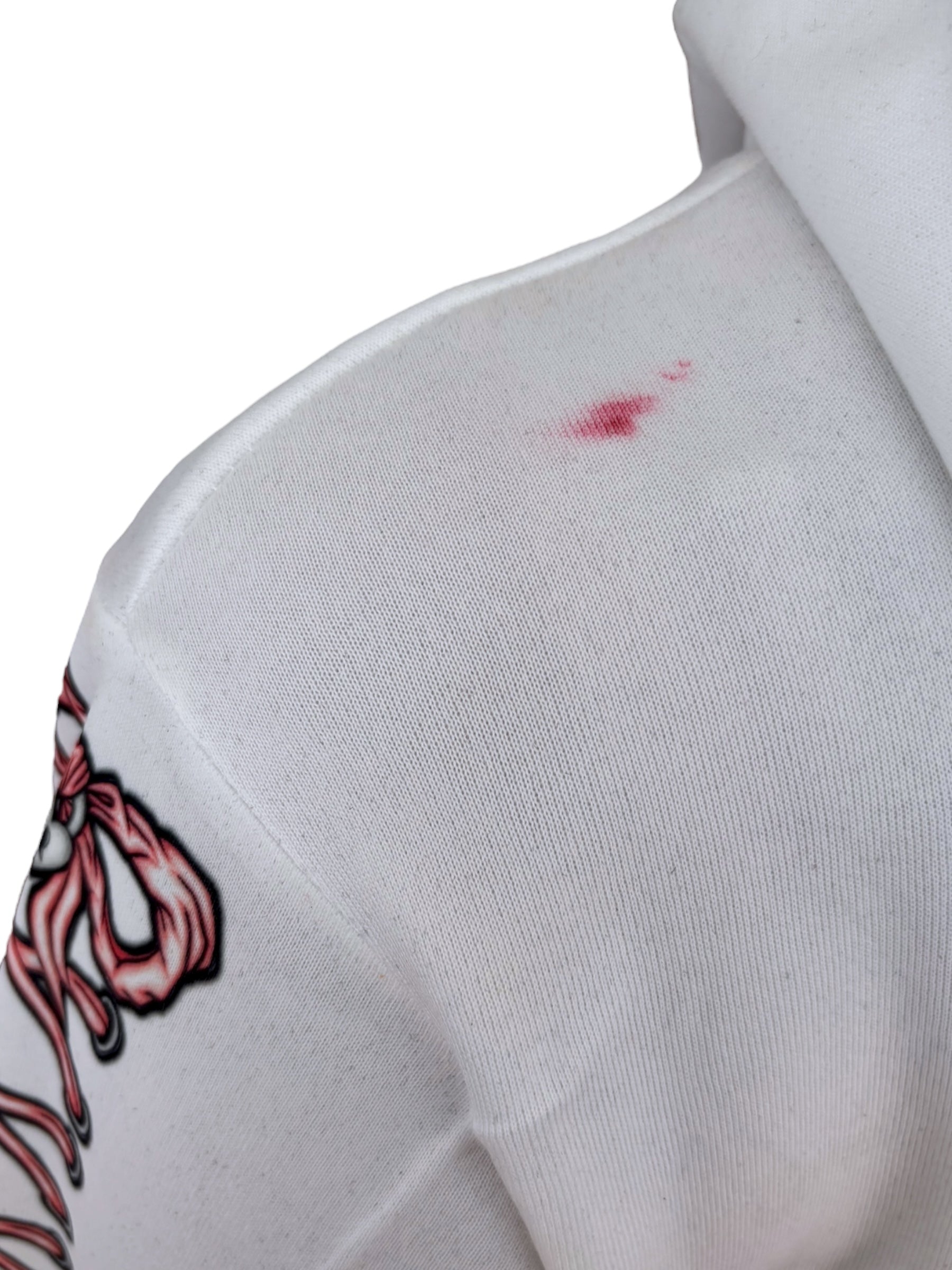 Hand-printed upcycled cropped hoodie. small misprints and pink mark on shoulder as pictured!