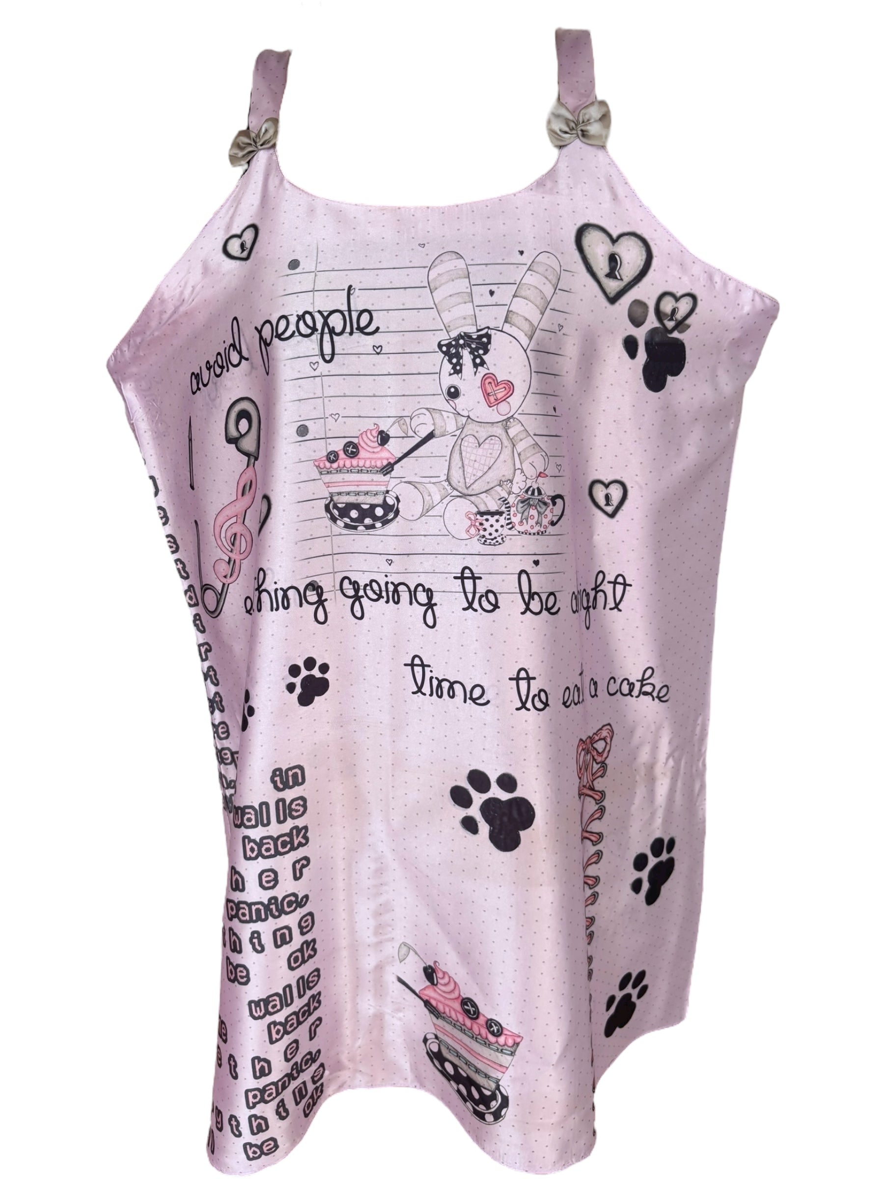 Hand-printed vintage lavender slip dress with grey bows on straps.