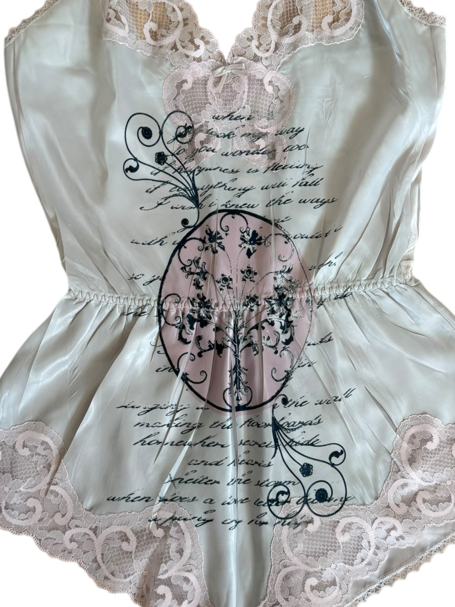 - do not iron over image, steam to remove wrinkles