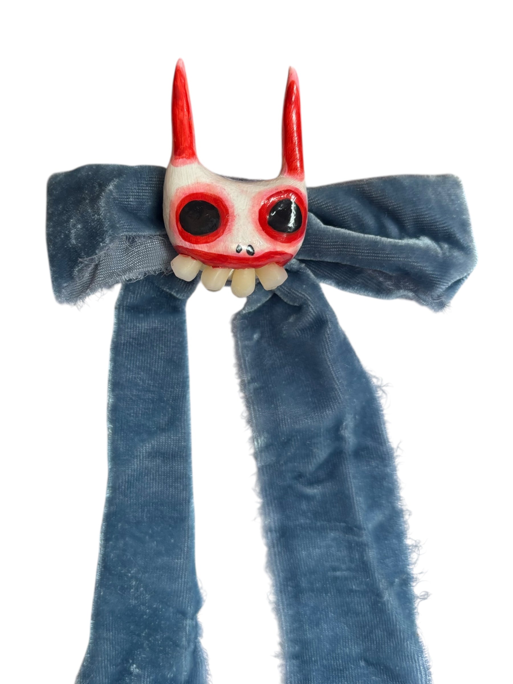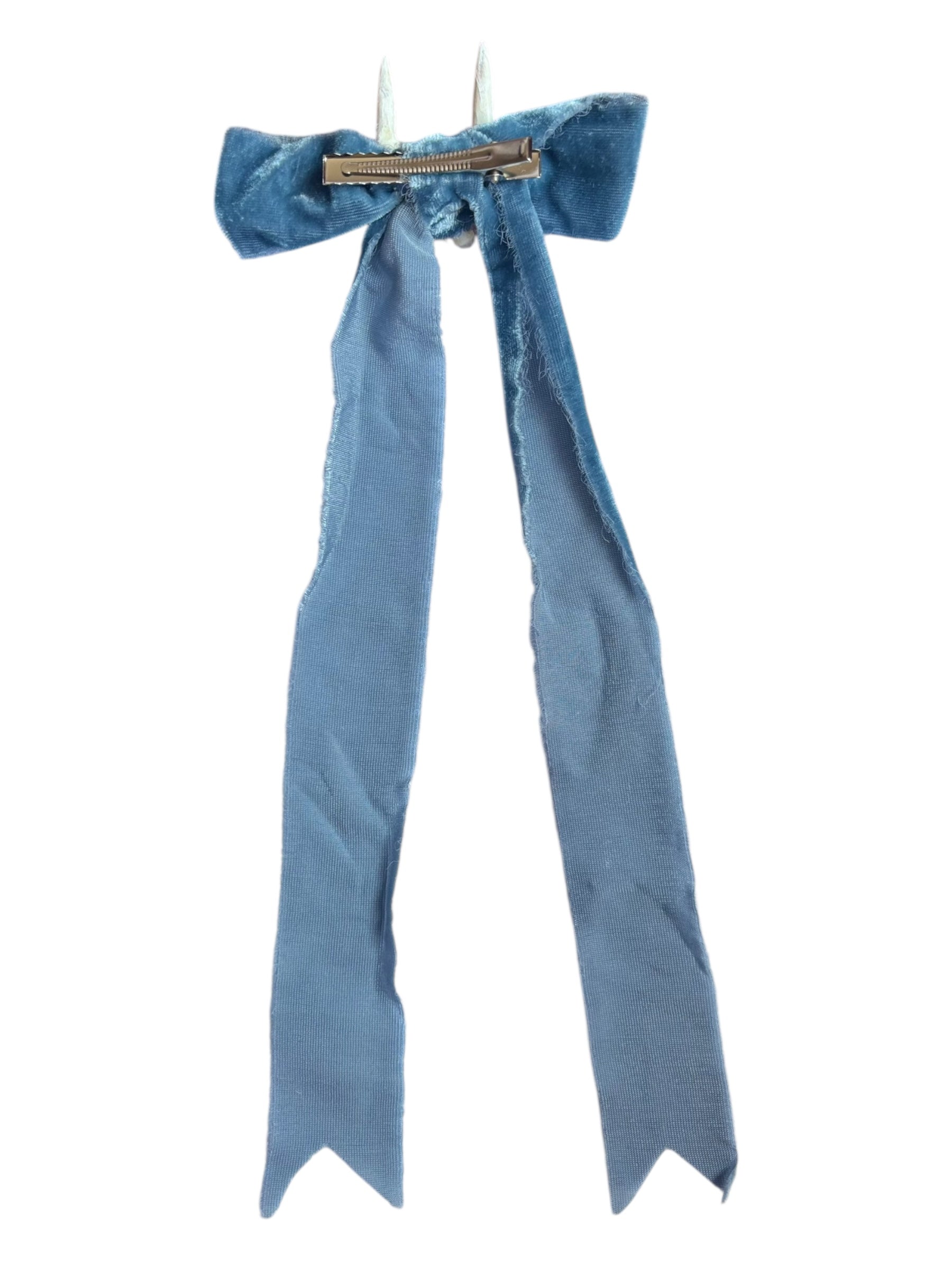 Bunny bows are fully hand sculpted and assembled ~ featuring lovely vintage ribbon and a special clay bunny head charm in the center, all connected to a silver alligator clip backing.