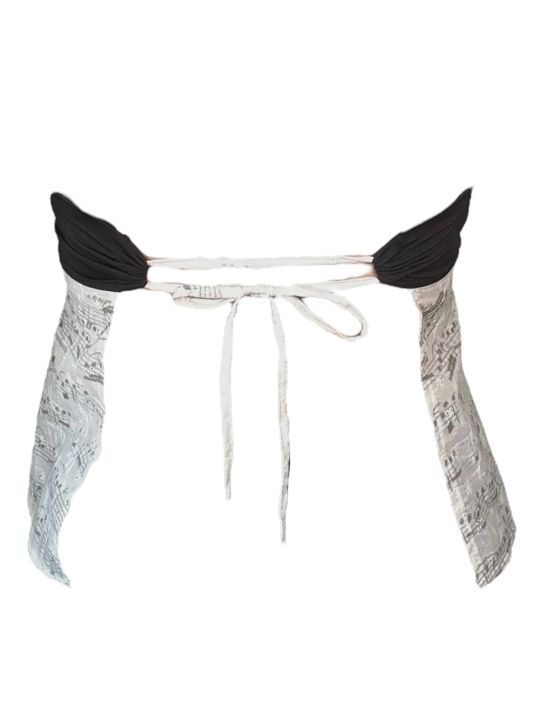 Hand-printed upcycled flutter tube top with open back. Fully adjustable with ties in back, as pictured