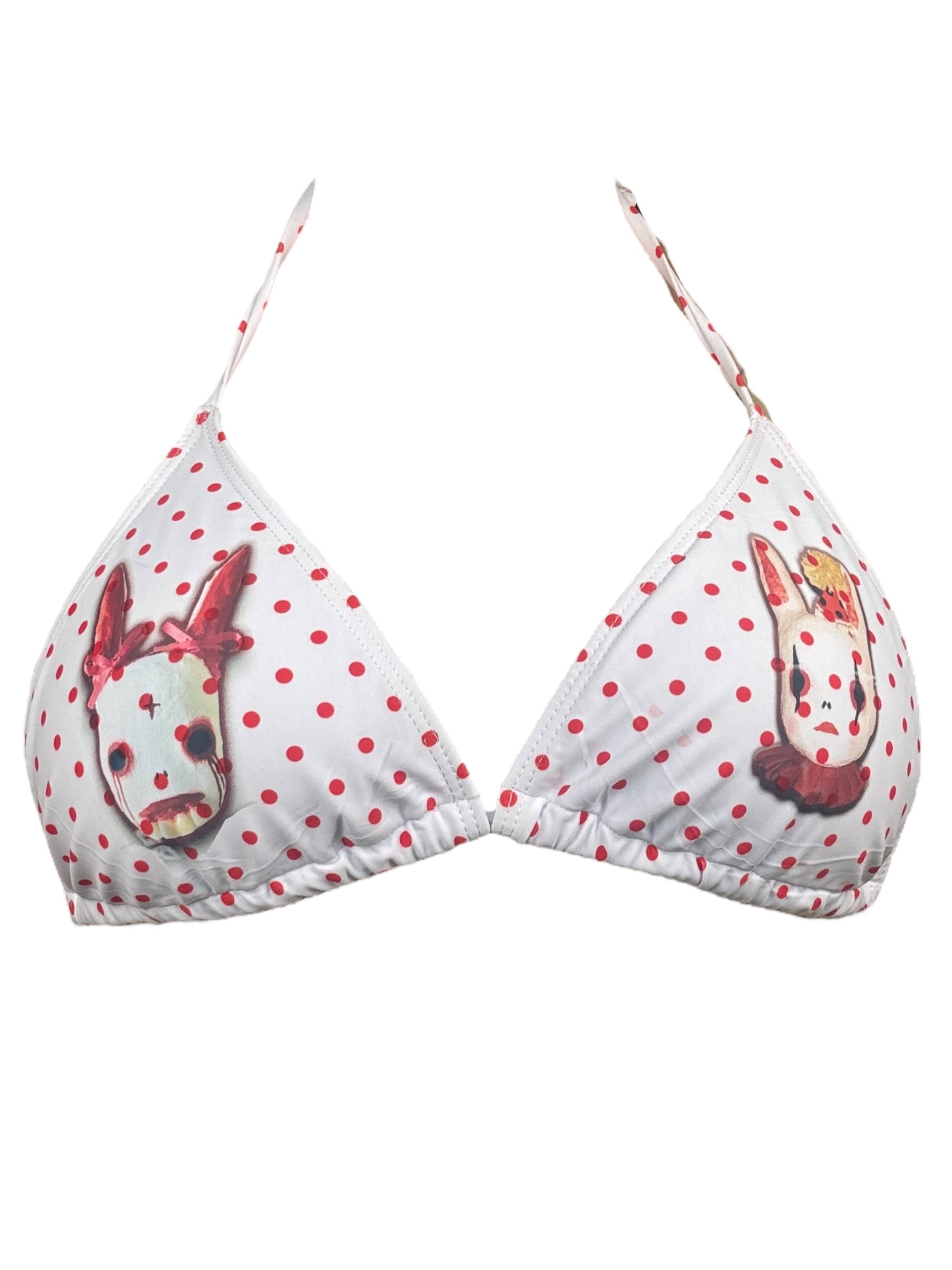 Hand-printed upcycled bikini. Never worn, hygienic liner included.