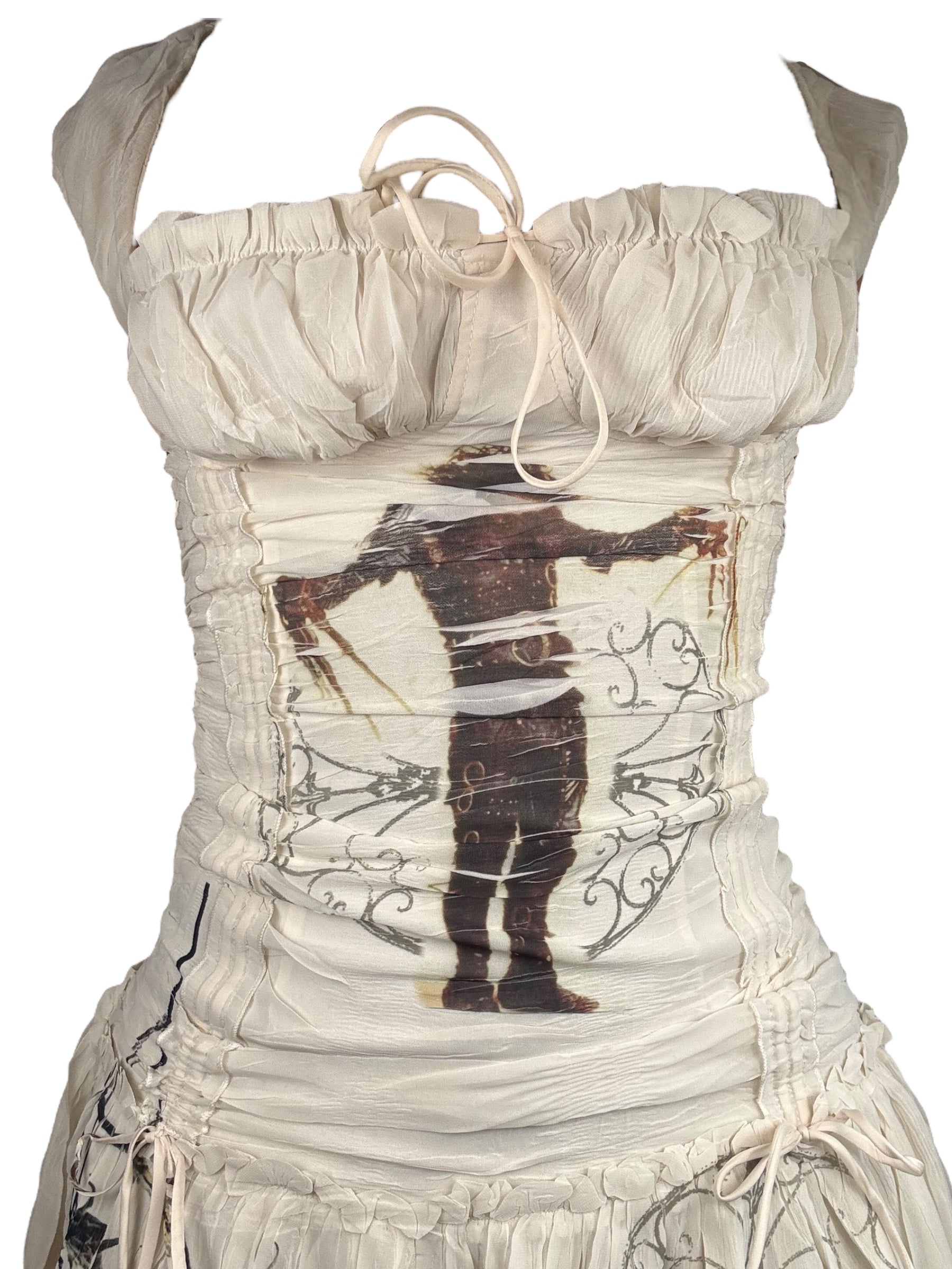 Scissorhand Communion Ivory Flutter Milkmaid Mini Dress - S/M