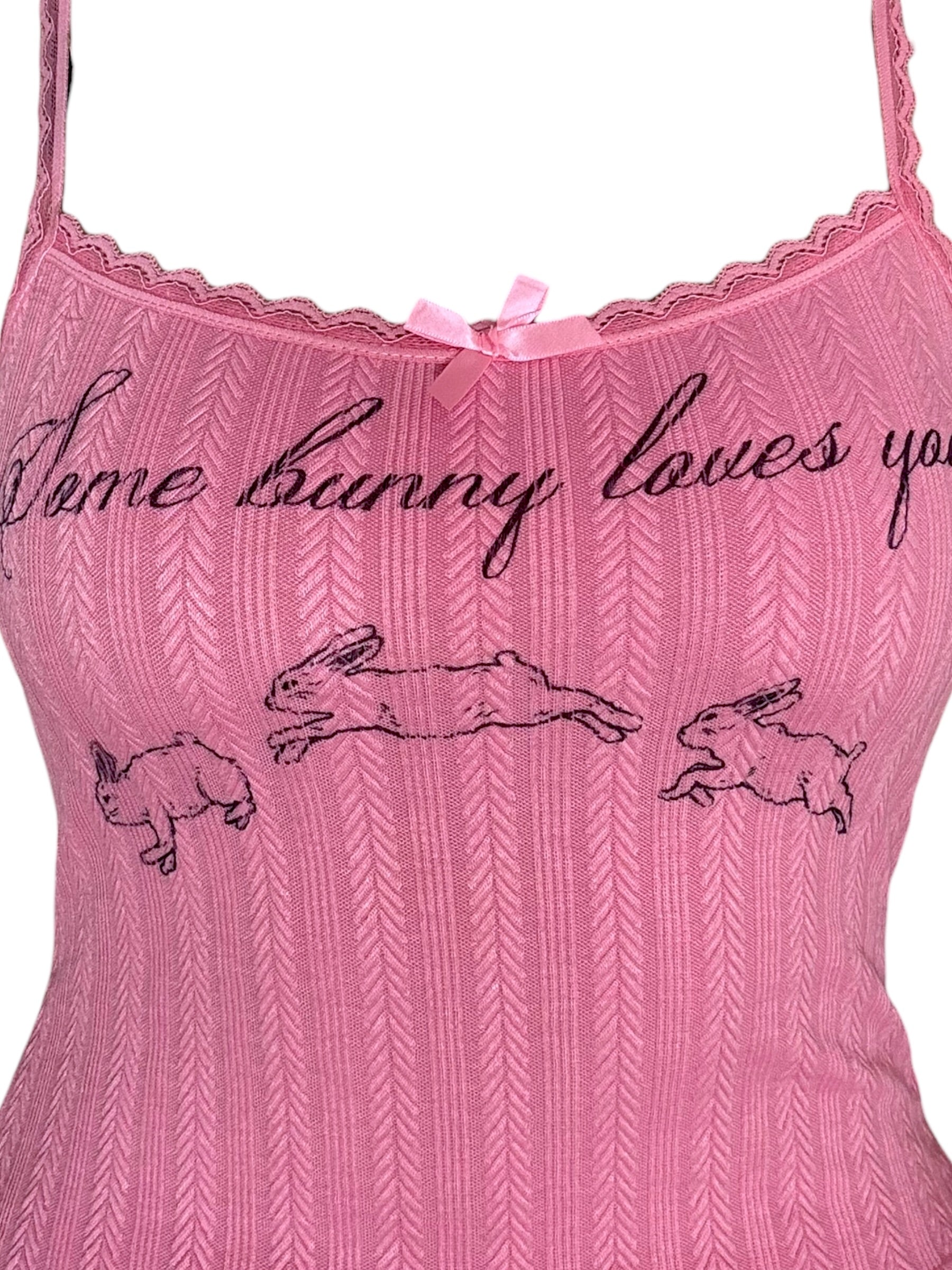 Hand-printed upcycled tank. Bunny illustration by @nar66tic (ig).
