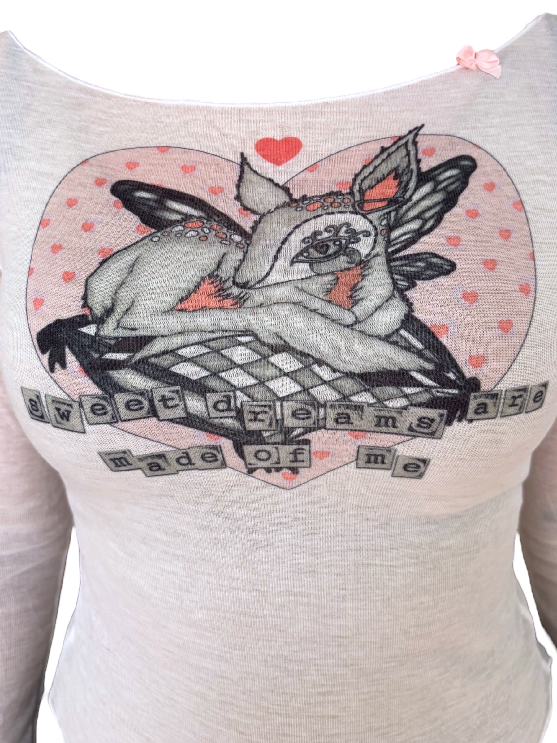 Hand-printed slouchy long-sleeve with bow, designed in collaboration with Fatal attraction